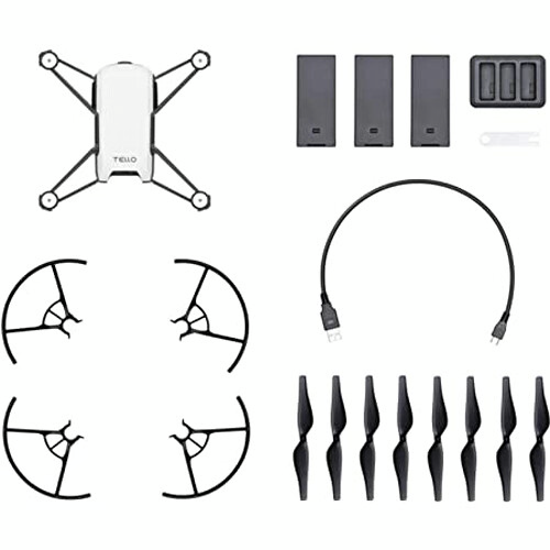 Aside from the previously mentioned batteries and hub, the Tello also includes four pairs of propellers and a set of propeller guards. Multicolored top plates are available separately to customize the look of your drone.