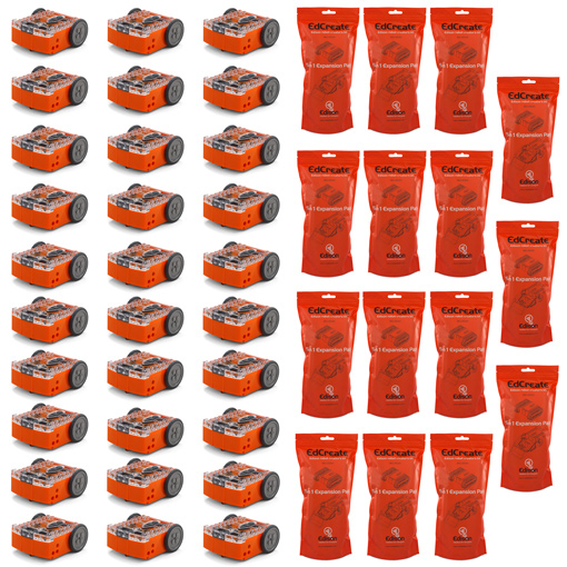 Perfect for schools, libraries, makerspaces and clubs, the EdSTEM Class Pack includes 30 Edison robots, 30 EdComm programming cables and 15 EdCreate Edison robot creator’s kits at a bundle-pack discount, reducing the cost per product in this bundle.