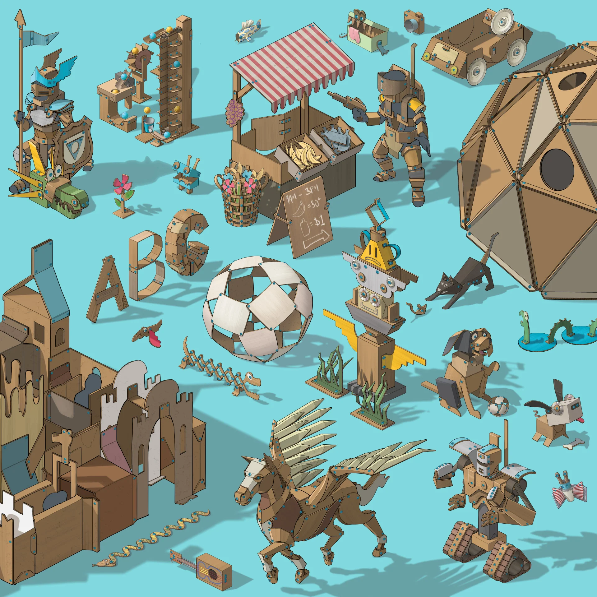The kit includes a range of reusable connectors, hinges, and clips, along with a safe and sturdy plastic saw and screwdriver. Simply gather cardboard boxes, plastic containers, and other recyclable materials from around your home, and let your imagination soar. The Makedo INVENT allows you to cut, fold, and connect materials together, enabling you to build anything from a majestic castle to a fully-functional robot or a custom-made vehicle.