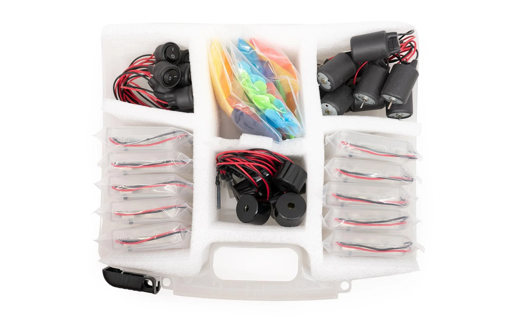 We suggest up to 3 children per battery holder, so this kit accommodates groups of 1-30. This kit does not come with dough, but we suggest purchasing two Squishy Circuits Dough Kits which will provide the correct amount of conductive and insulating dough.